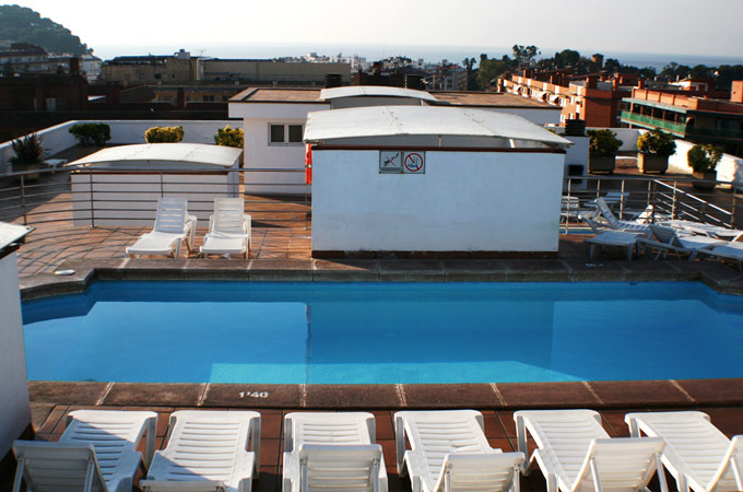 Modern, ordentlich und freundlich präsentiert sich die 3*** Apartmentanlage Condado. Absolutes Highlight ist die große Terrasse auf dem Dach mit Pool und Sonnenliegen. Über den Dächern von Lloret de Mar in der Sonne brutzeln, ins Wasser springen oder die Aussicht und Ruhe genießen, ist wirklich etwas Besonderes. Zur weiteren Ausstattung des Hauses gehören eine 24 Stunden besetzte Rezeption, eine Lobby mit Billardtisch, eine Internetecke, Aufzüge, Schließfächer sowie Snackautomaten für den kleinen Hunger zwischendurch. Die Benutzung des WLANs ist gegen Aufpreis möglich, ebenso der SB-Wäscheservice.
